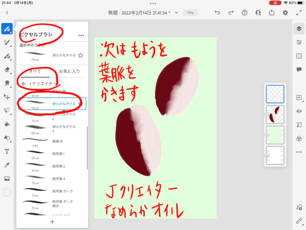 ②ピクセルブラシ→Jクリエーター→なめらかなオイル1・2