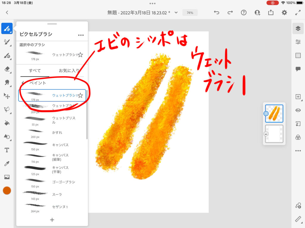 セザンヌはムラのある描写で揚げ物にピッタリです。